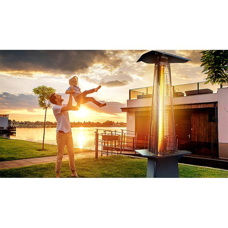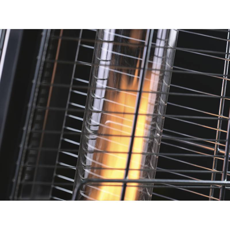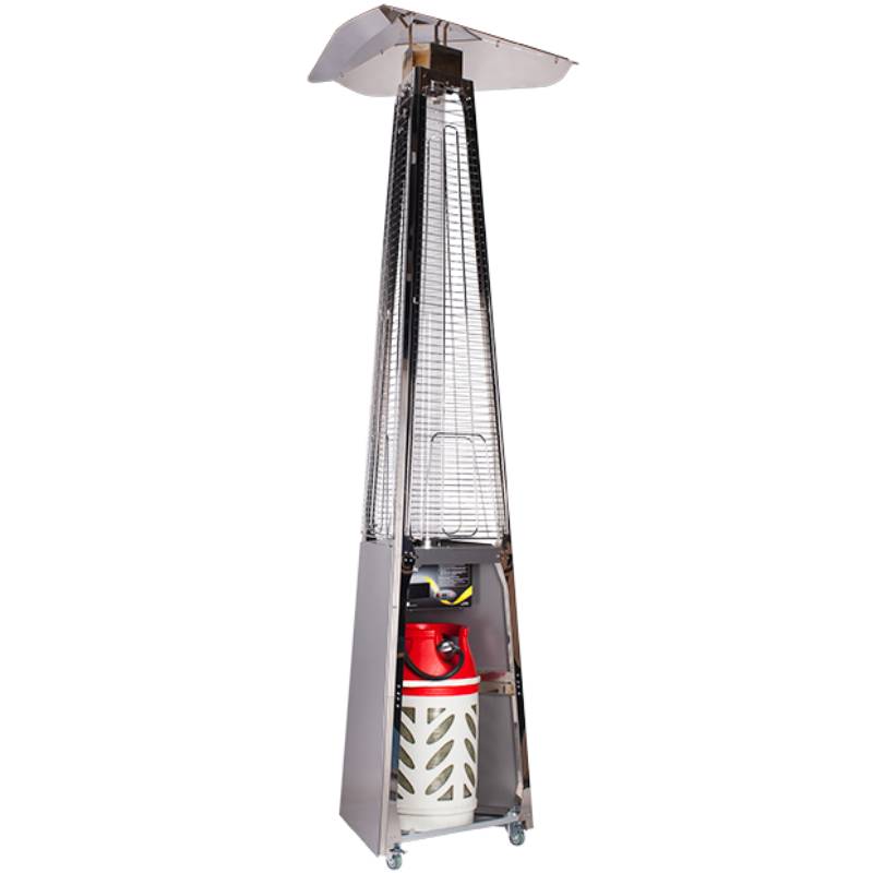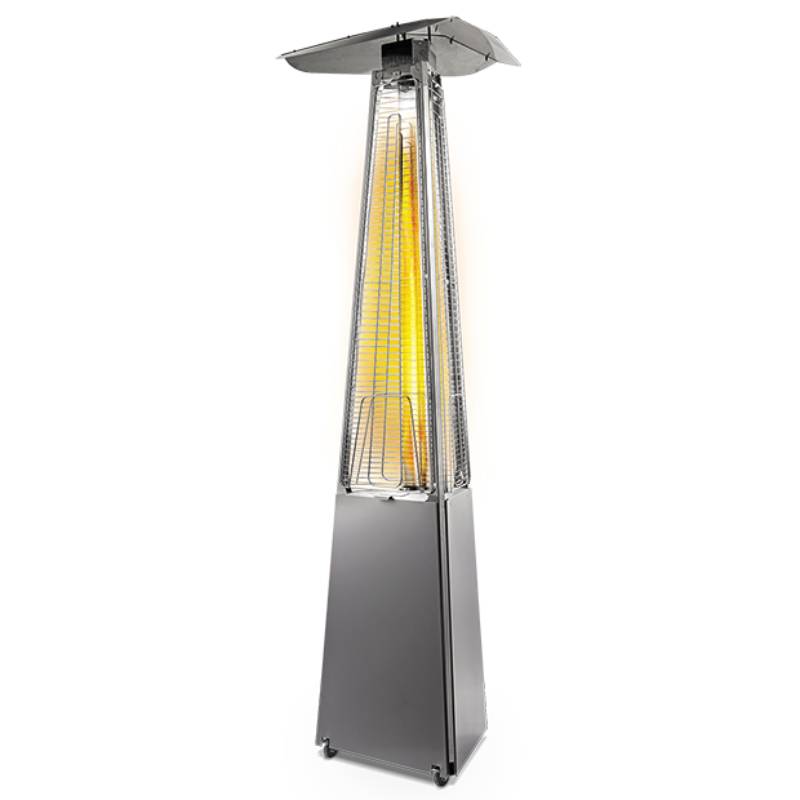 Уличный камин изготовлен из устойчивой к коррозии легированной нержавеющей стали и защищен от попадания атмосферных осадков сверху четырехгранным отражателем, площадь поверхности которого составляет 0,5 м². За безопасность эксплуатации отвечает многоуровневая система защиты. Датчик наклона отключает пламя при наклоне газового обогревателя более чем на 45°, термоэлектрический датчик и электромагнитный клапан сразу же останавливают подачу газа в критических ситуациях, таких как затухание пламени или утечка газа. За счёт встроенной колёсной базы обогреватель свободно и безопасно можно перемещать по любой поверхности.
