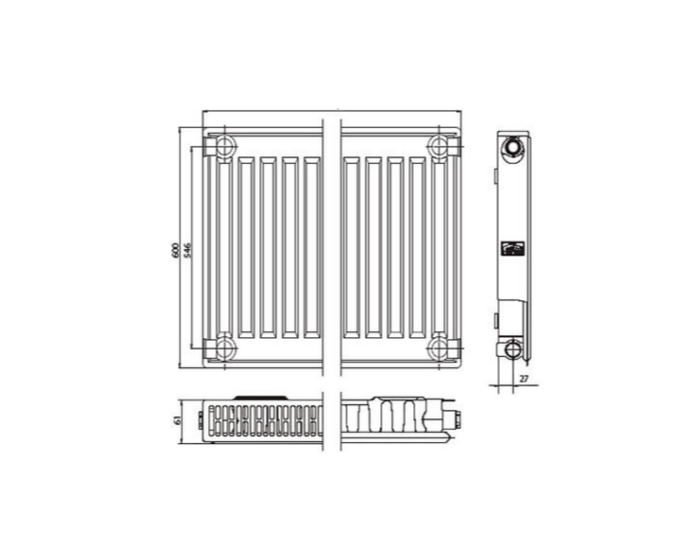 Панельный радиатор профильный с боковым подключением, тип 11, 600×500, FK0110600501N2Y