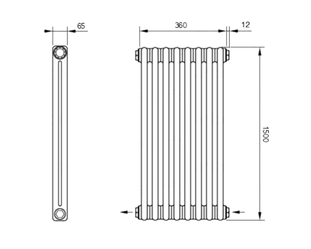 Радиатор Arbonia RRN 2150 8/2/42/12/1/1/12/3/0/0 AF 8 секции, подключение справа-налево, со встроенным воздушным клапаном вверху слева, высота 1500 мм, длина 384 мм, ширина 65мм+30мм(крепления, приобретаются дополнительно) цвет белый, мощность при д. 50 872 Вт.