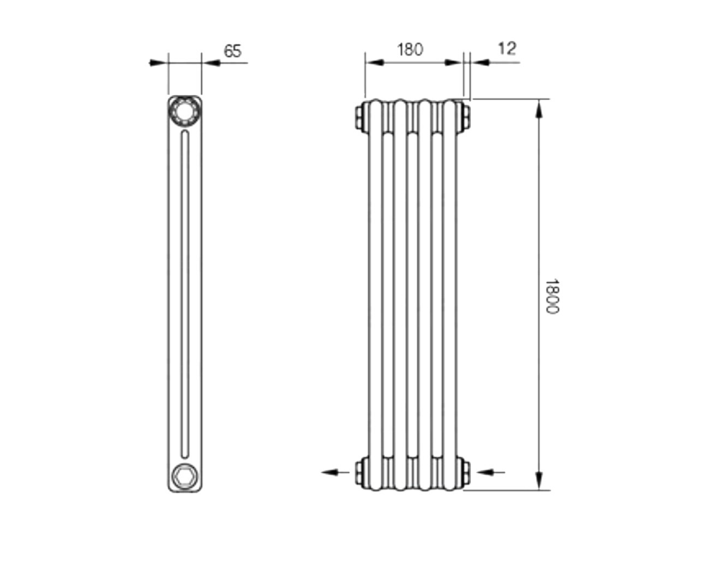 Радиатор Arbonia RRN 2180 4/2/42/12/1/1/12/3/0/0 CF RAL 9005 matt 4 секции, подключение справа-налево, со встроенным воздушным клапаном вверху слева, высота 1800 мм, длина 204мм, ширина 65мм+30мм(крепления, приобретаются дополнительно) цвет черный матовый, мощность при д. 50 520 Вт.