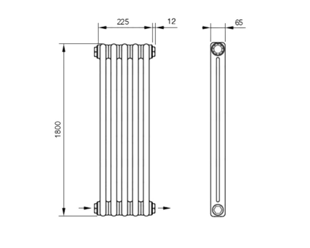 Радиатор Arbonia RRN 2180 5/2/24/12/1/3/12/3/0/0 CF RAL 7016 matt 5 секции, подключение слева-направо, со встроенным воздушным клапаном вверху справа, высота 1800 мм, длина 249мм, ширина 65мм+30мм(крепления, приобретаются дополнительно) цвет антрацид матовый, мощность при д. 50 650 Вт.